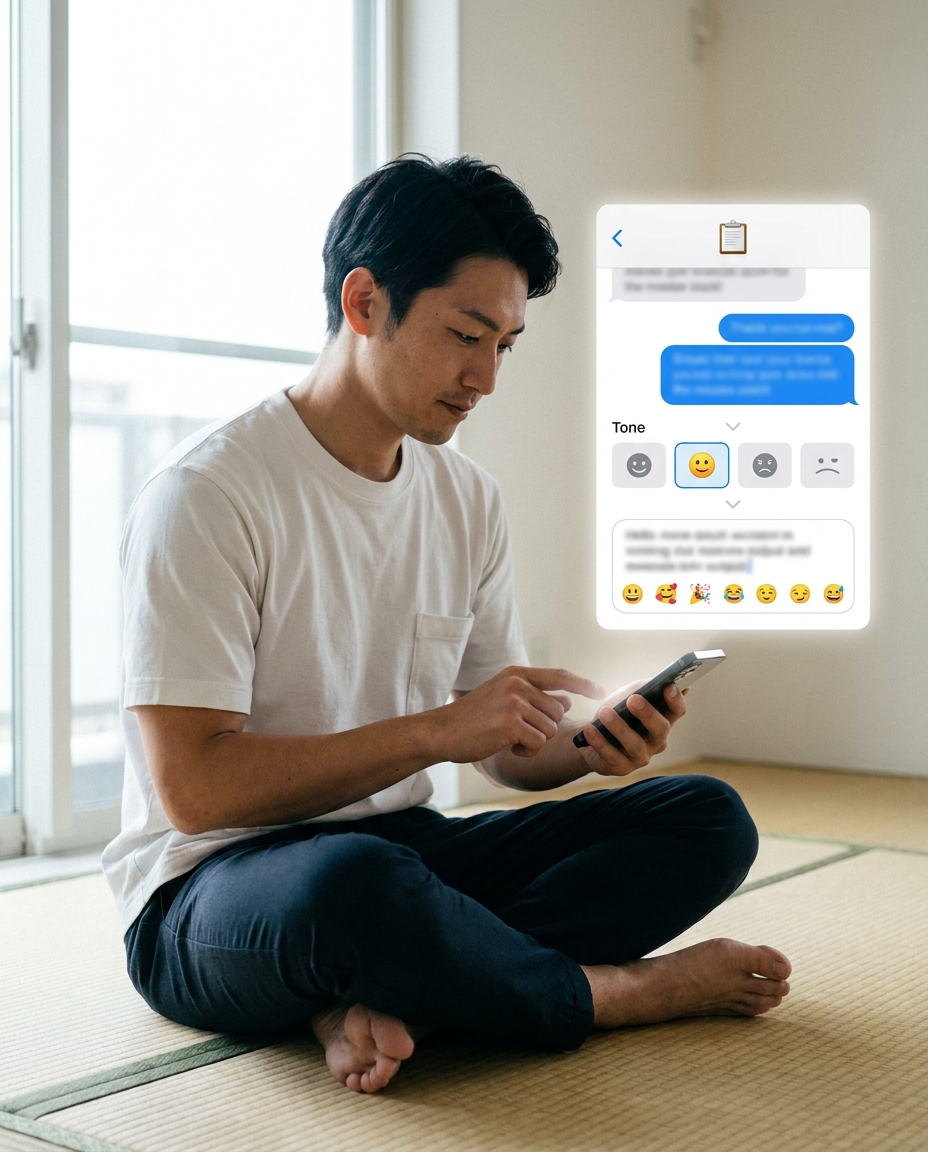 次に、自分が『どう思われたいか』というトーンを指定します。『親しみやすく』『誠実に謝罪したい』『短くシンプルに』といった一言を添えるだけで、生成される文章の質は別物になります。最後に、生成された案の一部を自分の言葉(語尾や絵文字)に微調整すれば、誰が見ても自然な返信文が完成します。