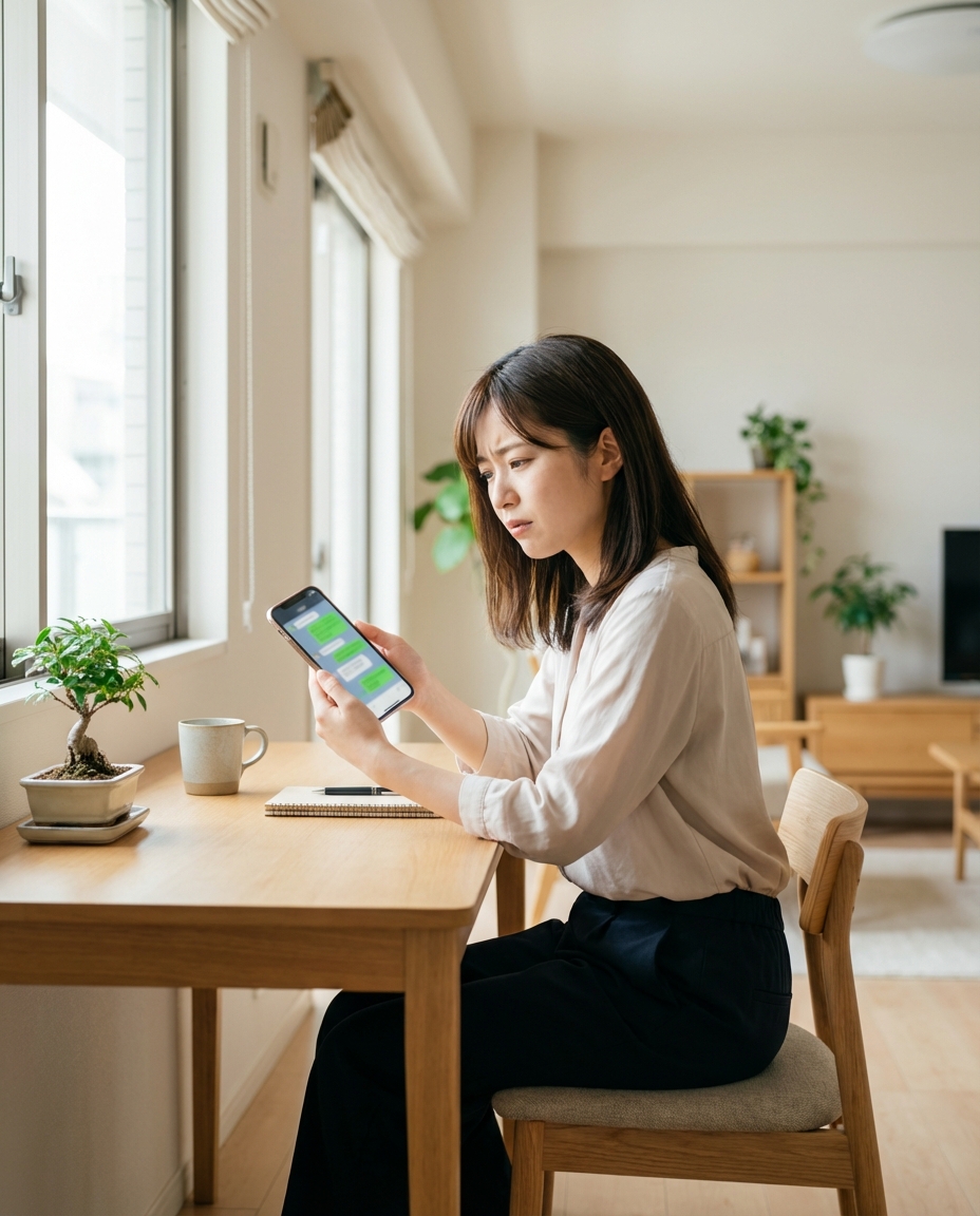 嫌われたくない、失礼になりたくないと考えすぎて指が止まるのは、相手を大切に思っている証拠です。会話を途切れさせたくないプレッシャー: これを強く感じすぎると返信が数日と遅れ、相手は『自分に興味がないのかな』と誤解してしまいます。正直、考えすぎている時点でコミュニケーションの成功率は下がっています。正解を出すことより、まずは短い反応を返すことが関係維持の近道です。