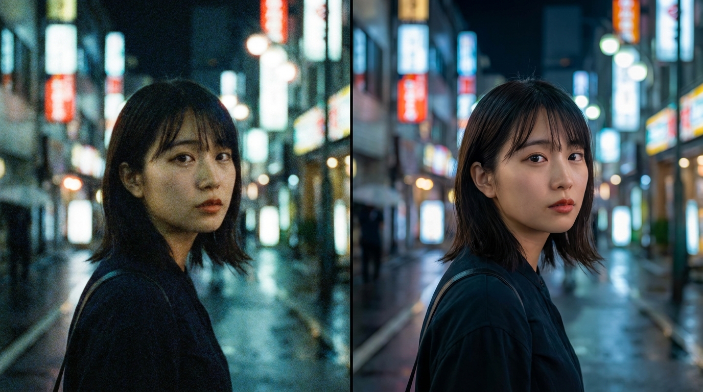スマホのズーム機能や夜間の撮影では、どうしてもノイズが乗りやすく画質が粗くなりがちです。SNSアップロード時のぼやけ: せっかく撮った写真もInstagramなどに投稿した途端、アプリ側の圧縮でさらに劣化してしまいます。正直、ボヤけたままの投稿はアカウントの印象を下げてしまうため、そのまま載せるのはおすすめしません。まずはAI補正でノイズを消し、ディテールを復活させることが先決です。