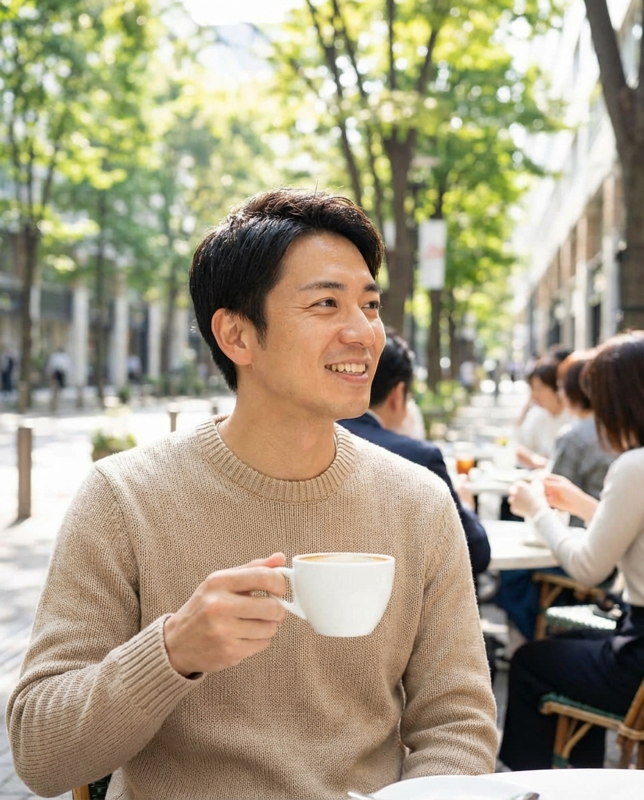 タイマー撮影は表情が固まるのでお勧めしません。4K動画を回しながら自然に動いて、後でベストな瞬間を切り出すのが正解です。屋外の自然光:公園やカフェで撮るだけで清潔感が爆上がりします。目線を外したポージング:あえてカメラを見ないことで、誰かに不意に撮られたような空気感を作れます。この『不意打ち感』こそが、1人撮影の違和感を消す最大の鍵です。