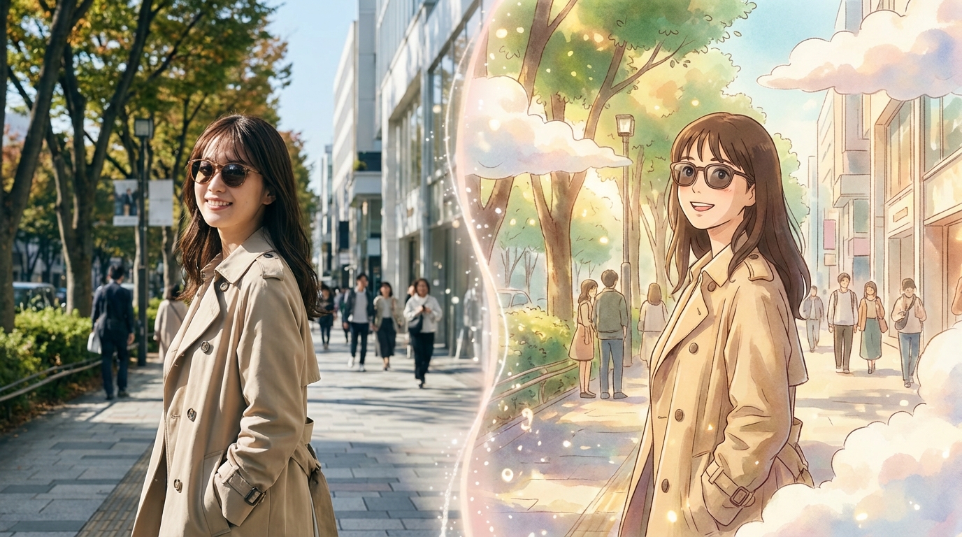 複数のアプリを経由して画質が少し落ちてしまった時や、過去の古い写真を蘇らせたい時は、最後にKoinaviのようなAI高画質化ツールを通すのがおすすめです。ぼやけた輪郭がくっきりし、SNSでの見栄えが格段に良くなります。