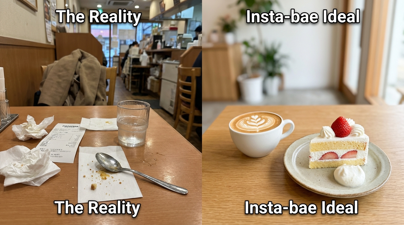 一生懸命撮っても「生活感」が出てしまうのは、主役以外のノイズを整理できていないからです。おしゃれなカフェで撮ったはずなのに、後ろの他人のコートや蛍光灯の反射が入り込むだけで、一気に現実に引き戻されます。「撮る前に片付ける」、あるいは「写らない角度を探す」。これだけで写真は劇的に変わります。