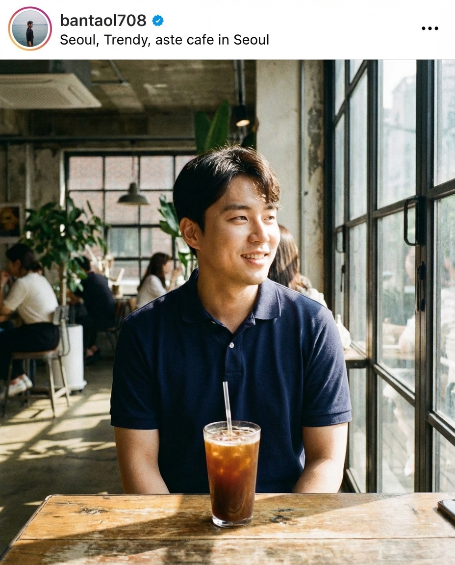 구도는 괜찮은데 화질이 아쉽거나 배경이 마음에 들지 않는다면 AI 도구를 활용하는 것이 훨씬 효율적입니다. 이 정도면 되겠지라는 안일한 생각으로 보정 없는 사진을 올리는 것보다, AI로 인스타 감성의 고해상도 이미지를 만드는 것이 성공률을 비약적으로 높여줍니다. 단 한 장의 사진으로 다양한 스타일 연출: 잘 나온 사진 한 장만 있으면 AI를 통해 수트 차림이나 캐주얼한 야외 촬영 느낌 등 여러 버전을 순식간에 만들 수 있어 선택의 폭이 넓어집니다.