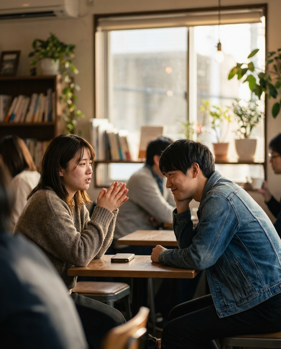 - 了解(相互理解): 会話が温まってきたら、「休日は何をしていることが多いですか?」「最近ハマっている動画とかありますか?」と、ライフスタイルに踏み込みます。共通の趣味が見つかればベストですが、違っても「それってどんな面白さがあるの?」と深掘りできます。