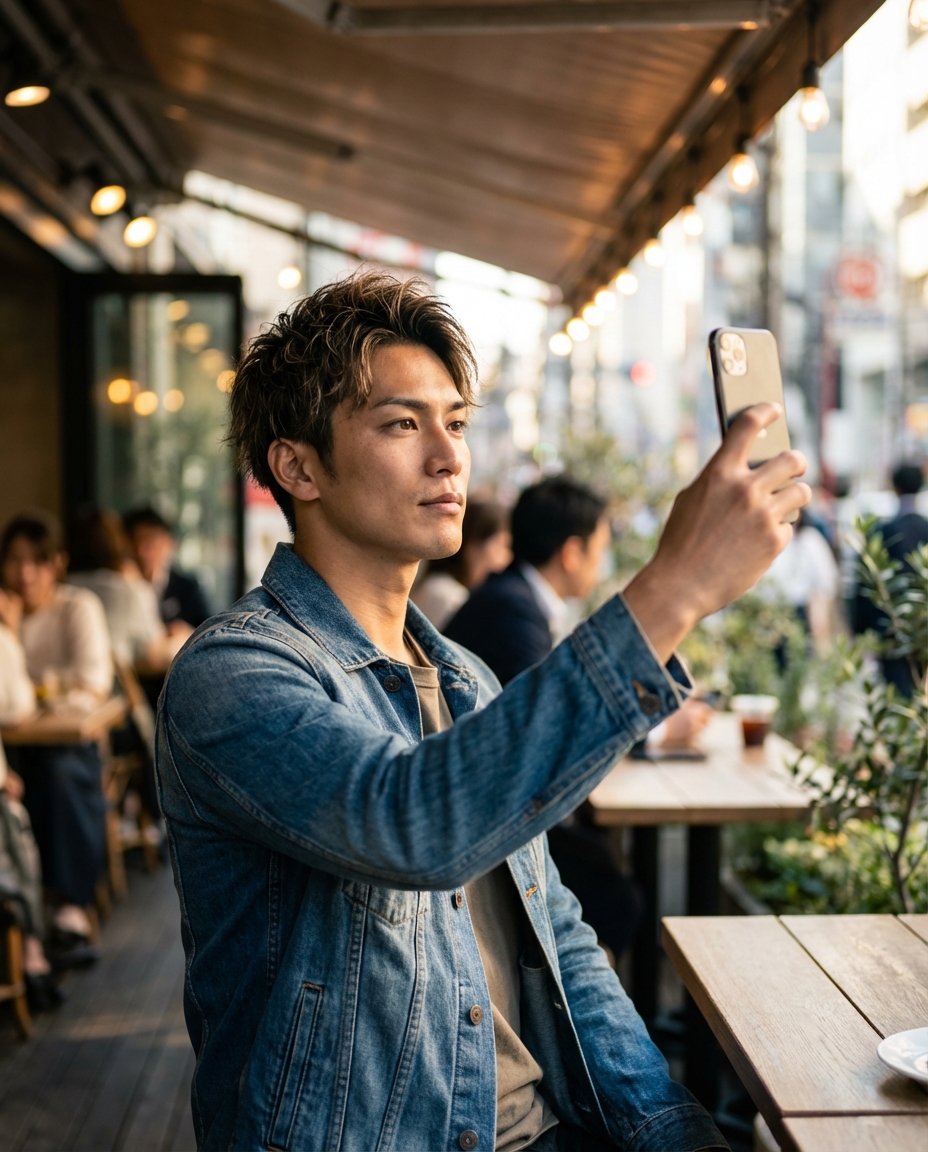 加工で目指すべきは「別人のような美しさ」ではなく「マイナス要素の除去」です。ヒゲの剃り跡やニキビ跡をコンシーラー機能で消す程度に留め、肌の質感(テクスチャ)は残しましょう。全体をぼかすのではなく、ポイント修正で清潔感を出すのが、男の自撮り加工の正解です。