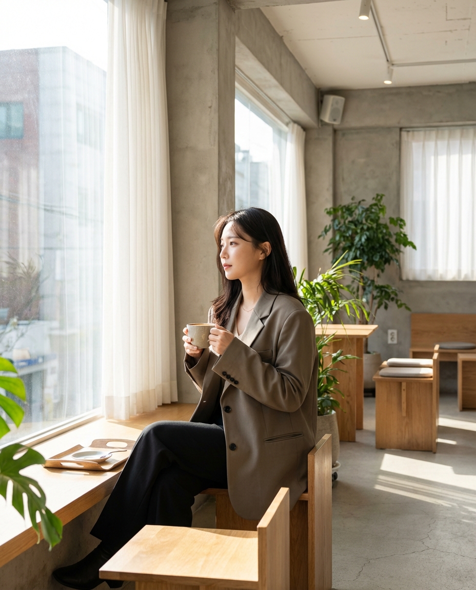 시선 처리와 구도: 렌즈를 정면으로 응시하기보다 살짝 비껴가는 시선이 훨씬 자연스럽습니다. 솔직히 말해서, 렌즈와 기싸움하듯 정면만 고집하는 분들은 백 장을 찍어도 결과물이 비슷할 수밖에 없어요. 이런 상태라면 성공률이 매우 낮으니 시선부터 분산시키세요.